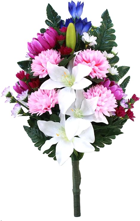 Amazon 山久 造花 仏様のお供えに ユリ と りんどう と 小菊 の花束一対 仏花 1007 6675 Ct触媒加工 シルクフラワー 造花 オンライン通販
