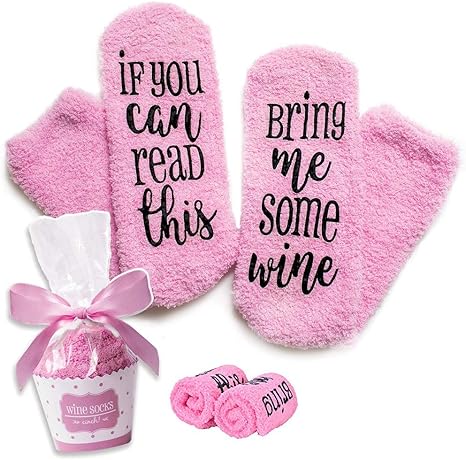Amazon Asicsoci おもしろワインソックス カップケーキギフトパッケージ付き If You Can Read This Socks Bring Me Some Wine フレーズ付き 彼女への面白いアクセサリー 妻へのプレゼント 23ドル以下の女性へのギフトに ワイン 酒 バー用品 オンライン通販