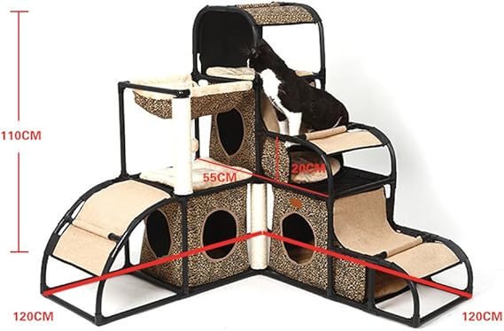 Amazon プレビューペット キャットビレッジラグジュアリーリビングシリーズ キャットビレッジホームタウン3レベルレオパード キャットプレイセンター 登りやすい キャットタワー 据え置き 複数猫もok 猫 ハウス 隠れ家 トンネル おもちゃ Merrhome キャットタワー 通販