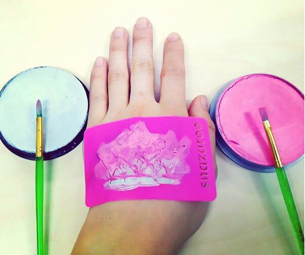 スナザルー No Twitter Art With Fun ペイント中 ステンシルの上から ウォーターベースカラー2色塗ります 色の境目を筆で馴染ませ ステンシルを剥がすと グラデーションも簡単です スナザルー ハッピースナザルー ボディペイント フェイス