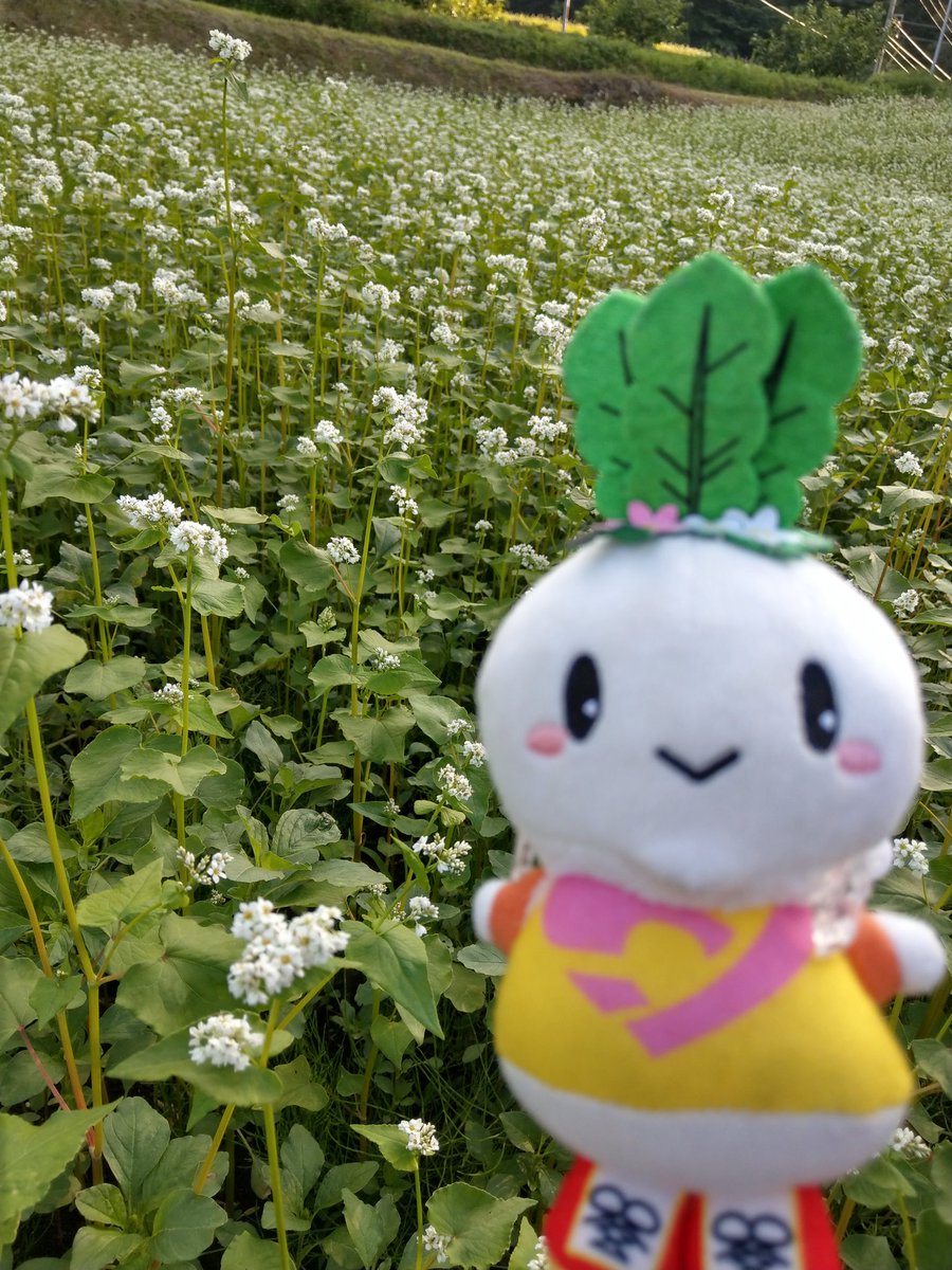 からみん ゆるキャラ これは去年の写真だけど もうすぐそばの花がたくさん咲く時期になるよ 遠くの山と真っ白なそばの花は圧巻の景色だよ 今年も綺麗な写真が撮れるといいなぁ からみん 下條村 そばの花 白い花 遠くの山々 景色最高