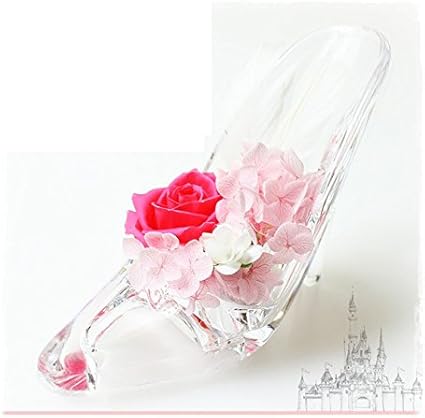 Amazon プリザーブドフラワー枯れないお花 ガラスの靴 シンデレラ一輪 大花 羽付 ピンク ゼラニウム プリザーブドフラワー オンライン通販
