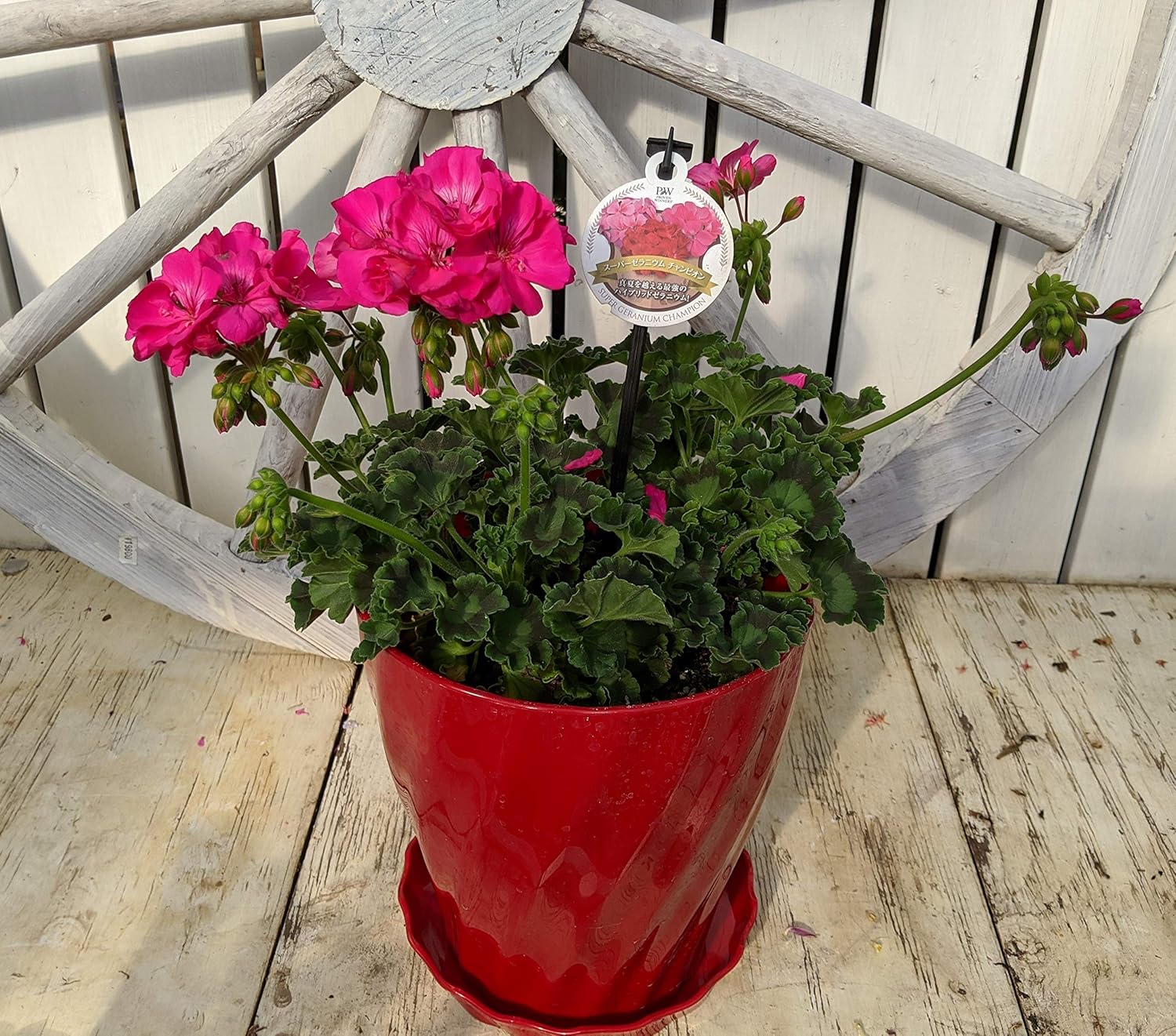 Amazon のんびり母の日ギフト スーパーゼラニウム 赤鉢 受け皿付き 観葉植物 オンライン通販