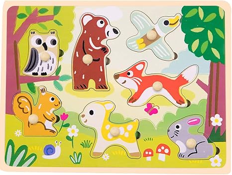 Amazon Achicoo ジグソーパズル 知育 木製 ボード ハンドグリブ 子供 教育玩具 クリスマス 誕生日プレゼント ハンドグラブボード 716 森 木製パズル おもちゃ